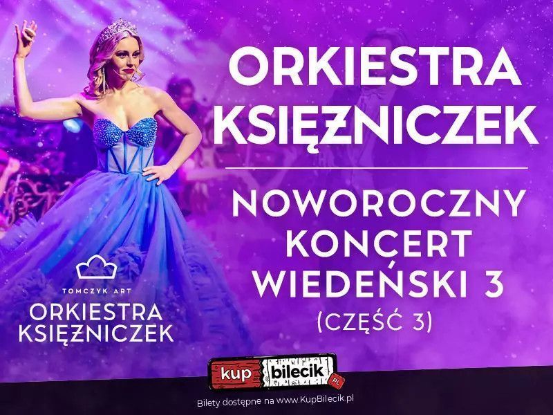 Noworoczny Koncert Wiedeński 3 (część 3.) Orkiestry Księżniczek to połączenie wiedeńskiej formy i kunsztu z młodością, wdziękiem, werwą i niespotykaną muzykalnością artystów wykonujących to widowisko. Zabrzmią największe, ponadczasowe i wiecznie bliskie sercom Melomanów przeboje króla walca - Johanna Straussa. Nie zabraknie także popisowych arii z "Księżniczki Czardasza", "Zemsty Nietoperza", "Barona Cygańskiego", "Wesołej Wdówki", "Krainy Uśmiechu" oraz takich dzieł literatury muzycznej jak: "Nessun dorma" Pucciniego, "Walc Łyżwiarzy" Emile Waldteufel"a, "I will follow him" z musicalu Zakonnica w Przebraniu czy nieśmiertelne "Time to say goodbye". Nie zabranie także wielu muzycznych niespodzianek oraz spektakularnego show, do którego na przestrzeni lat przyzwyczaiła melomanów z całego świata pierwsza na świecie Orkiestra Księżniczek!